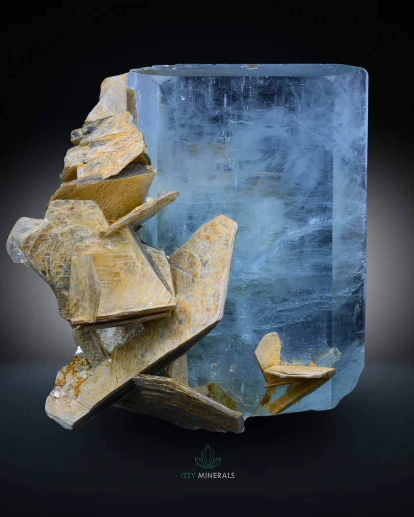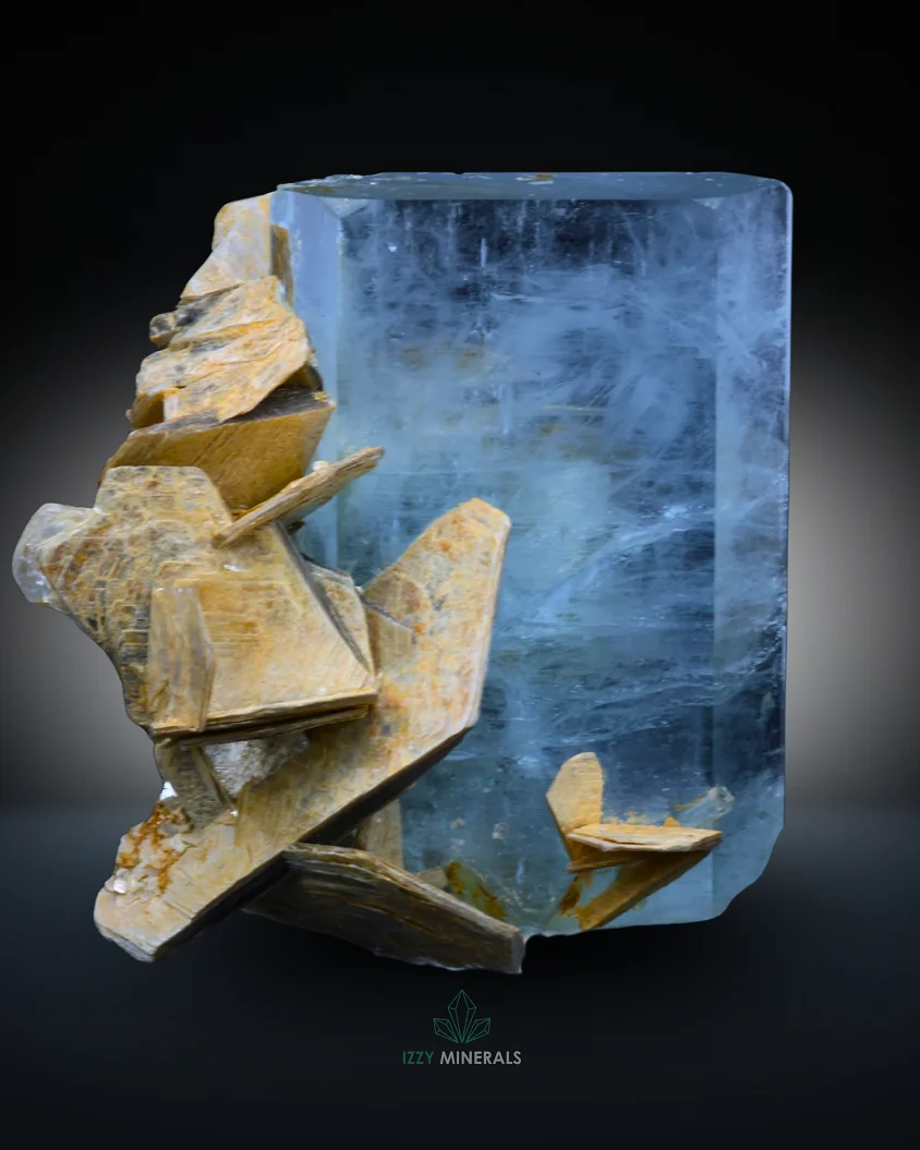 Handpicked by IzzyMineralsCo and delivered from a small business in Pakistan, this Aquamarine crystal with Muscovite mica is an excellent choice for collectors who appreciate natural mineral associations and authentic pegmatite formations.