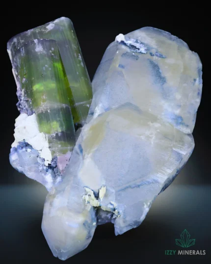 Green Tourmaline Crystal with Blue Quartz from Afghanistan – 425 g Natural Crystal Specimen