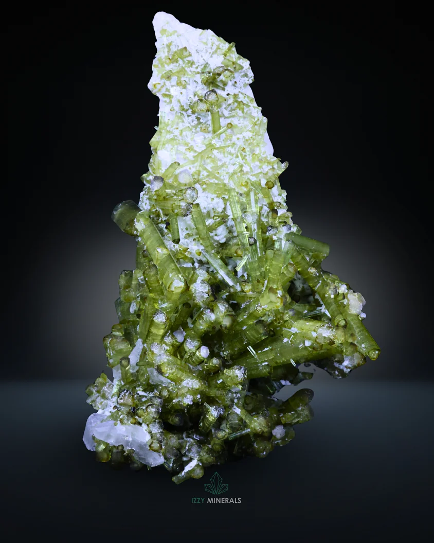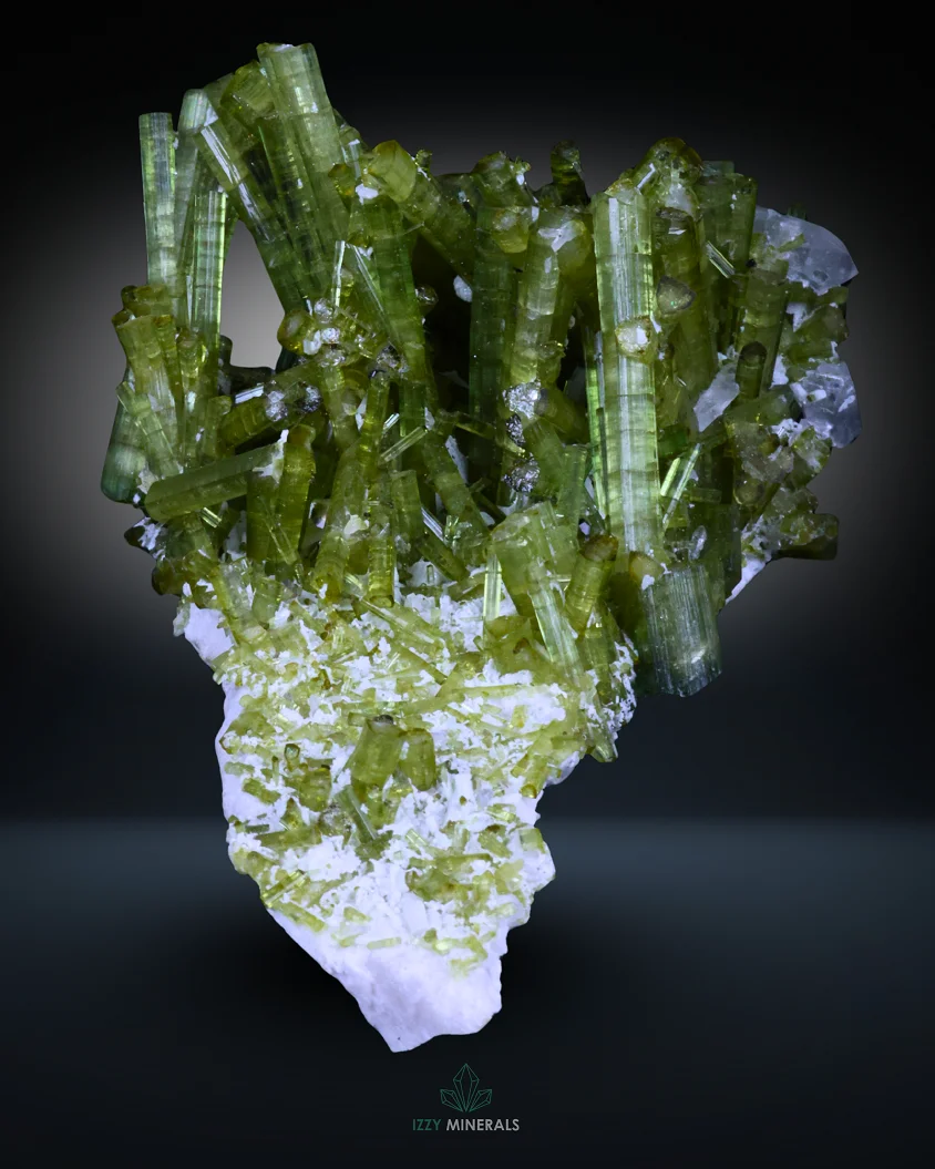 Handpicked by IzzyMineralsCo and delivered from a small business in Pakistan, this Green Tourmaline cluster is an excellent choice for collectors seeking a naturally formed piece with strong color and elegant structure.