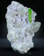 The 30 mm long Green Tourmaline crystal stands out beautifully against the host quartz, creating a stunning visual balance of color, clarity, and natural formation. Its raw, untouched condition preserves the specimen’s authentic geological character, making it highly desirable for collectors, mineral enthusiasts, and display purposes.