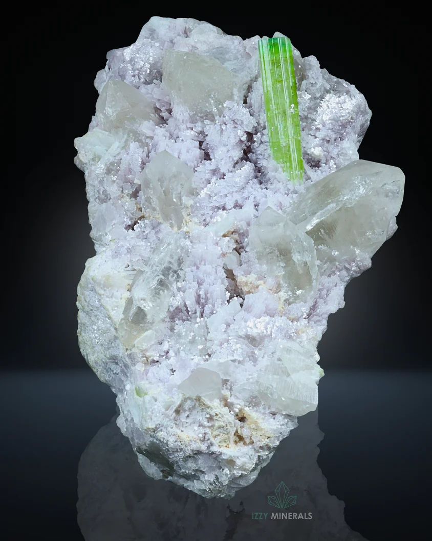 Discover the striking beauty of this natural Green Tourmaline crystal elegantly combined with Quartz, sourced from the mineral-rich regions of Afghanistan. Weighing an impressive 816 grams, this substantial specimen showcases the captivating contrast between the vibrant green tourmaline and the luminous quartz matrix.