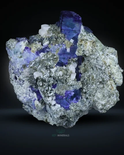 Blue Fluorite with Calcite & Natural Matrix – 222g Collector’s Specimen