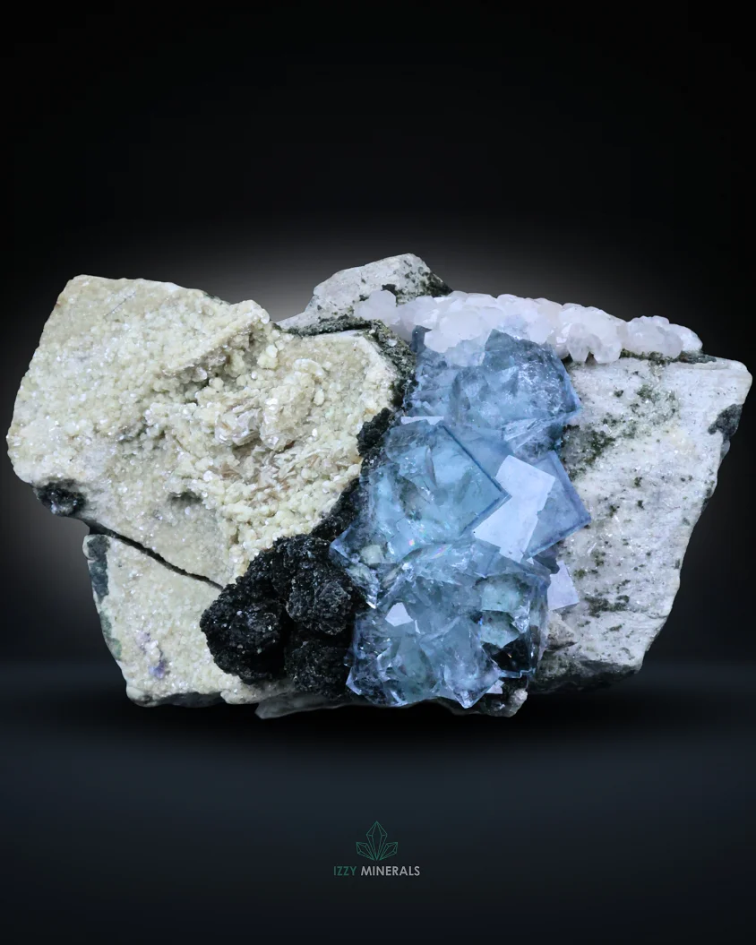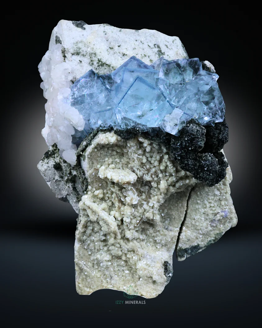 Blue Fluorite with Calcite on Matrix – 218g Natural Mineral Specimen